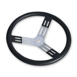 15" black steering wheel with natural anodized aluminum spokes and bump grip. Wheel has a high grip black polyurethane coating.