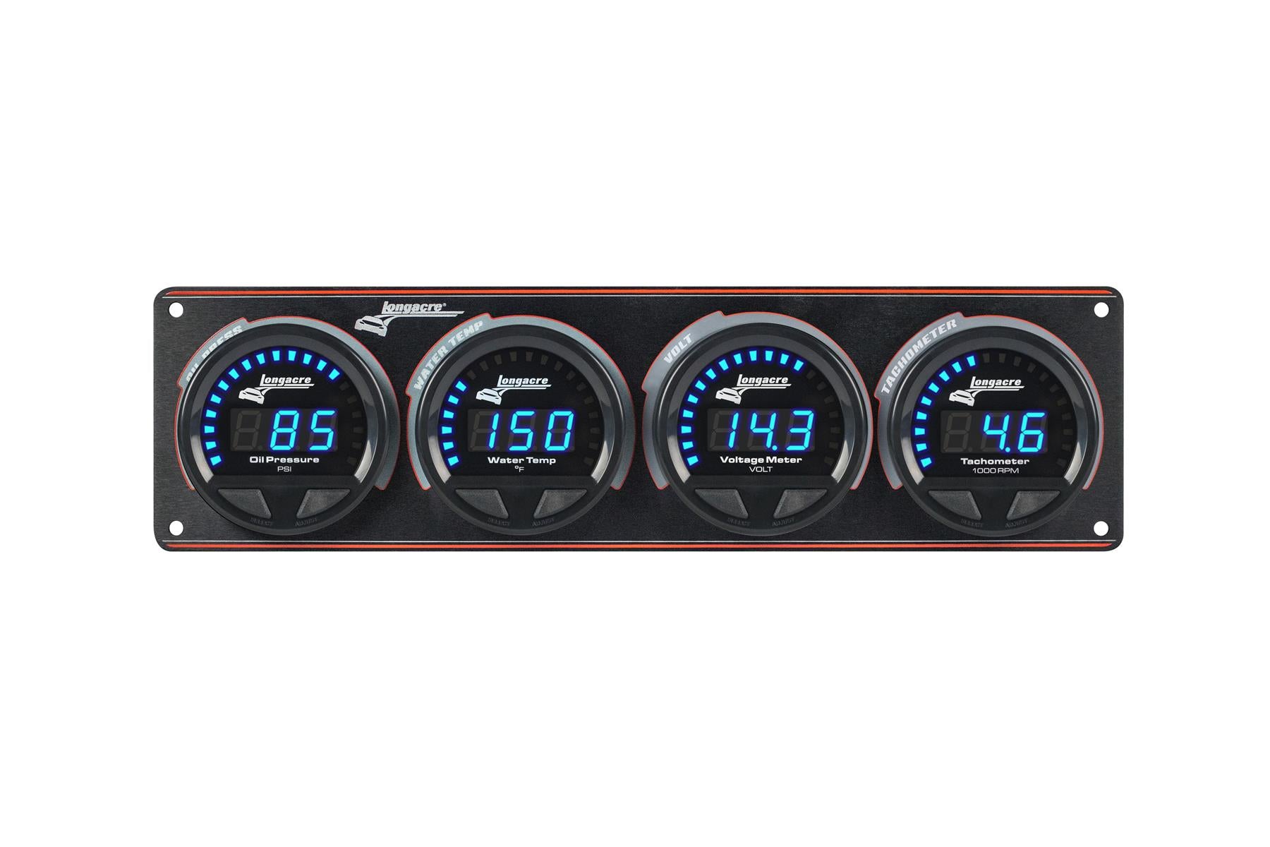 Digital Elite LED Waterproof Gauge Panel from Longacre, 3 Gauge Oil Pressure/Water Temperature/Volt/Tach
