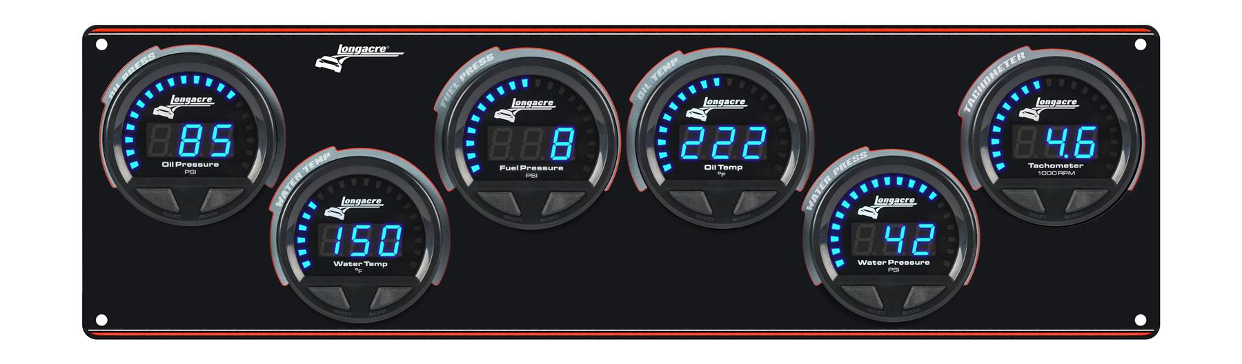 Digital Elite LED Waterproof Gauge Panel from Longacre, 5 Gauge Oil Pressure/Water Temperature/Fuel Pressure/Oil Temperature/Water Pressure/Tach