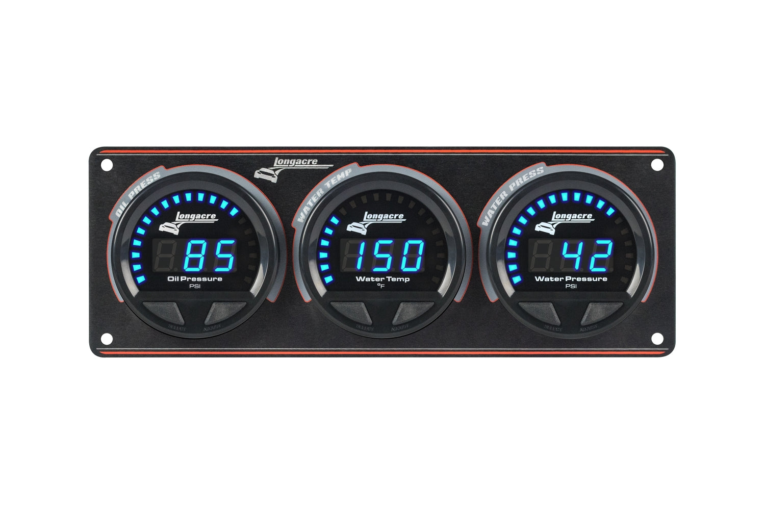 Digital Elite LED Waterproof Gauge Panel from Longacre, 3 Gauge Oil Pressure/Water Temperature/Water Pressure