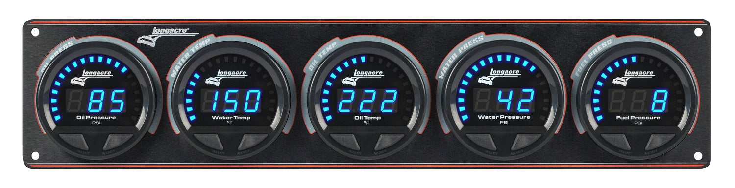 Digital Elite LED Waterproof Gauge Panel from Longacre, 5 Gauge Oil Pressure/Water Temperature/Oil Temperature/Water Pressure/Fuel Pressure