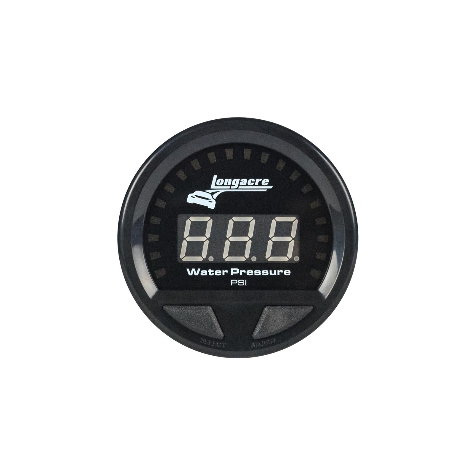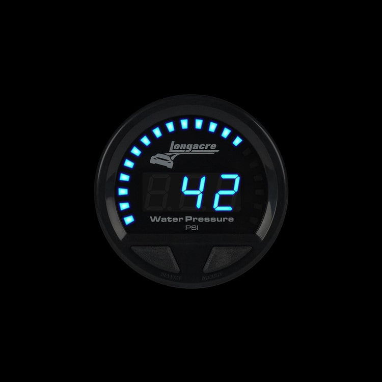 The next generation in instrumentation has arrived. Longacre Racing products is proud to introduce the all-new Digital Elite Waterproof Gauges. Engineered for wet and dirty environments, the Digital Elite Waterproof Gauges provide the absolute best in waterproof sealing. These elite gauges provide the most precise measurements on the market with unmatched resistance to vibration, heat, and moisture. Manufactured with IP-66 certified methods to be waterproof; dust tight and safe against powerful water jets. Gauge is 2-5/8" in diameter.