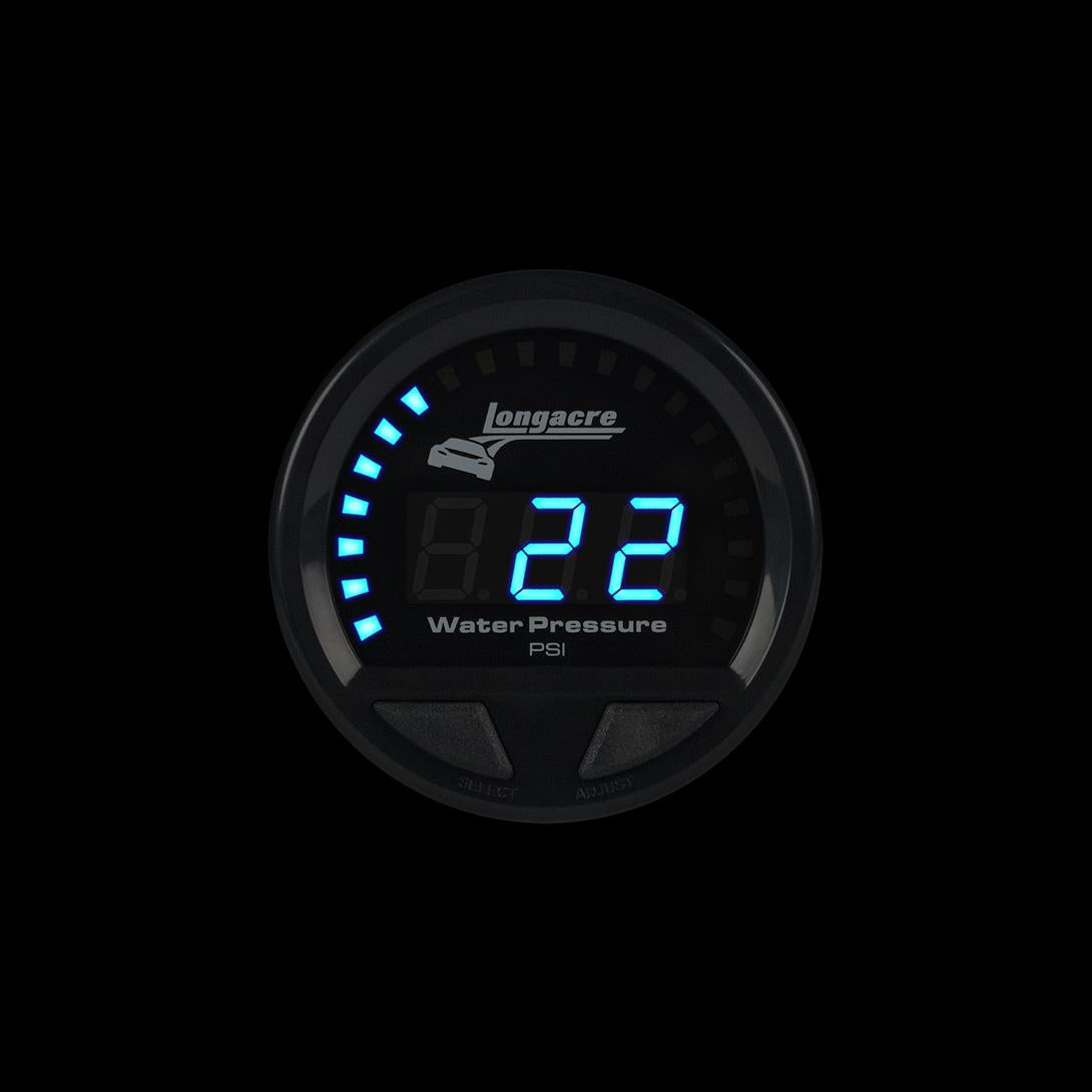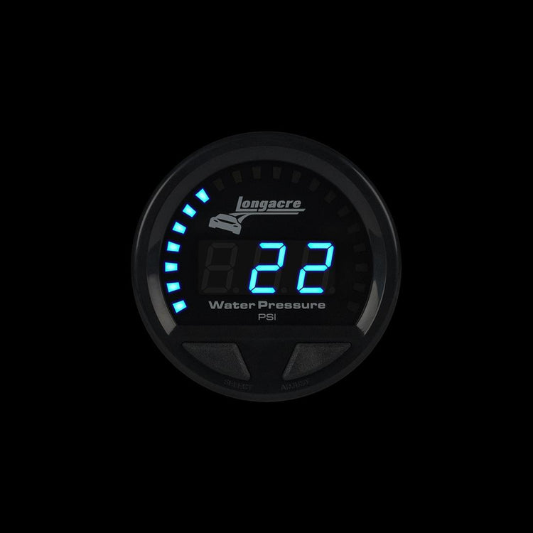 The next generation in instrumentation has arrived. Longacre Racing products is proud to introduce the all-new Digital Elite Waterproof Gauges. Engineered for wet and dirty environments, the Digital Elite Waterproof Gauges provide the absolute best in waterproof sealing. These elite gauges provide the most precise measurements on the market with unmatched resistance to vibration, heat, and moisture. Manufactured with IP-66 certified methods to be waterproof; dust tight and safe against powerful water jets. Gauge is 2-5/8" in diameter.