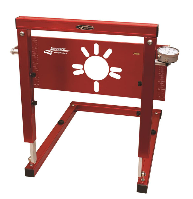 This simplified bumpsteer gauge design uses a single precision dial indicator to tell you directly the exact amount of bump steer within .001". No need to subtract one dial reading from another - less chance for error.