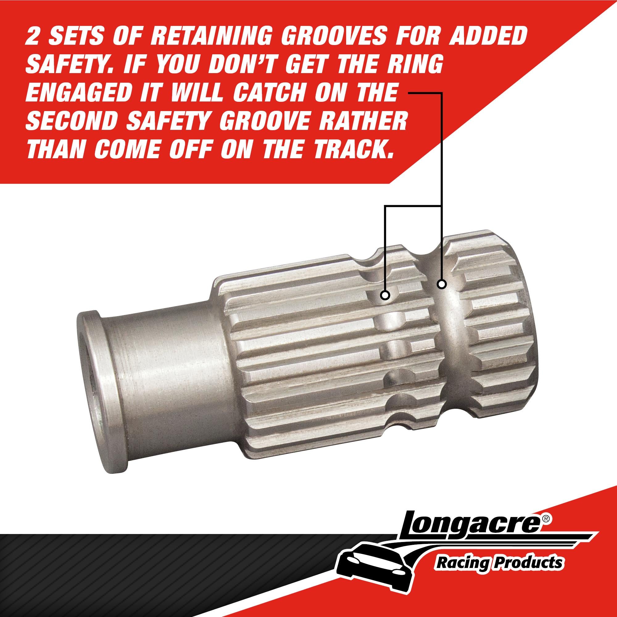 For safety there are 2 sets of retaining grooves. If you don't get the ring engaged it will catch on the second safety groove rather than come off on the track.