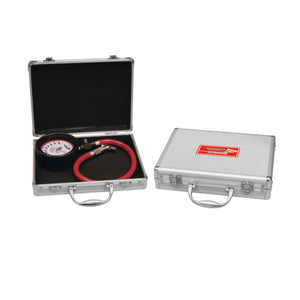 Tire Pressure Gauge - Reads in 1/2 lb increments, includes both angle and ball chucks and dual bleed buttons for faster setting.