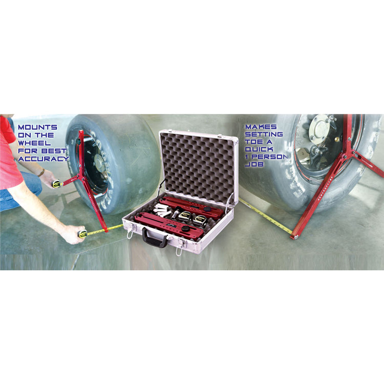 Here's a quick and accurate way to set toe. Mounts on the wheel (steel wheels) to avoid errors. You can even attach a caster camber gauge to either side (use PN 78291 Digital Caster/Camber Gauge with AccuLevel™ less adapter).