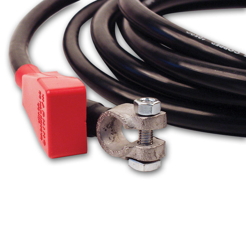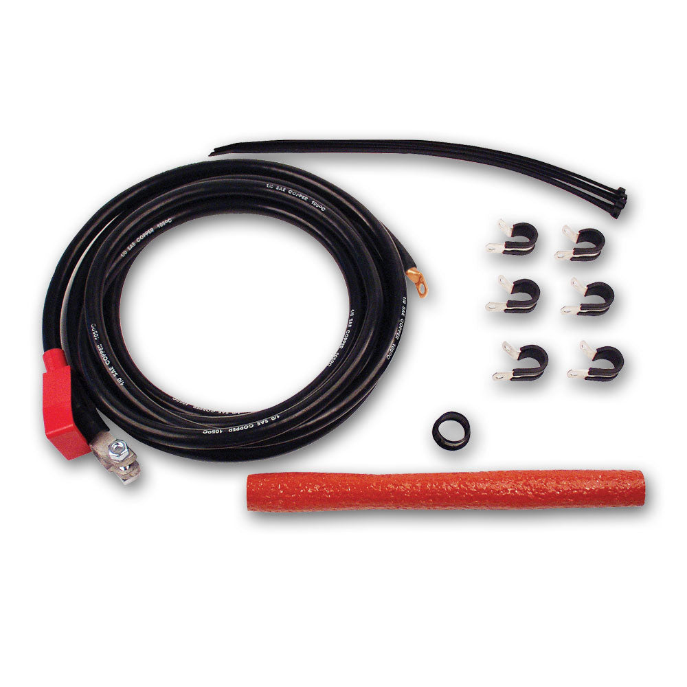 - Kit includes high amp battery cable, end terminals, color coded terminal boots to prevent arcing, Firebraid™ insulation, firewall grommet, Adel clamps and wire ties