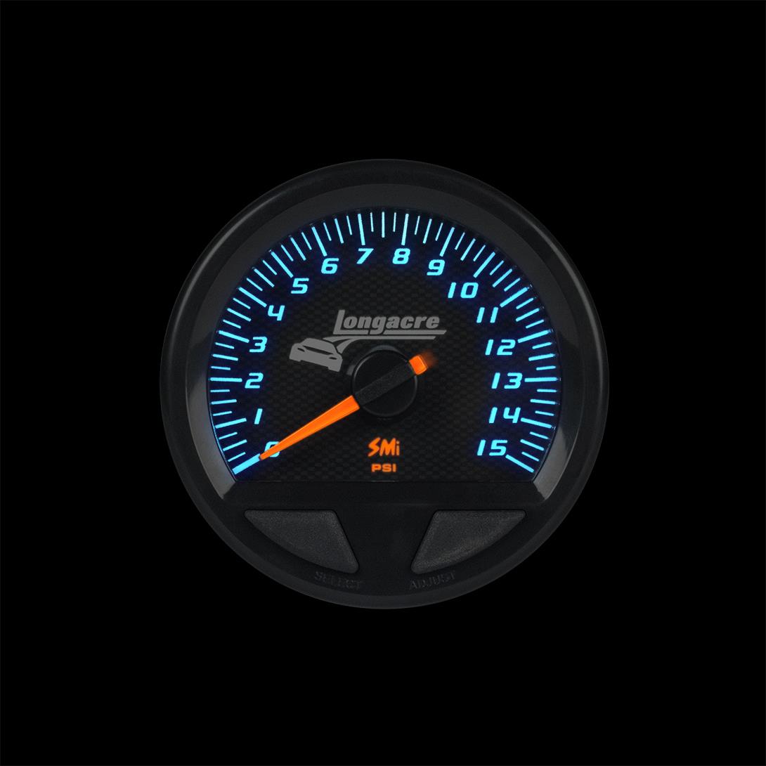 The next generation in instrumentation has arrived. Longacre Racing products is proud to introduce the all-new SMi™ Elite Waterproof Gauges. Engineered for wet and dirty environments, the SMi™ Elite Waterproof Gauges provide the absolute best in waterproof sealing. These elite gauges provide the most precise measurements on the market with unmatched resistance to vibration, heat, and moisture. Manufactured with IP-66 certified methods to be waterproof; dust tight and safe against powerful water jets. Uses Firewall Mount 52-43540. Gauge is 2-5/8" in diameter.