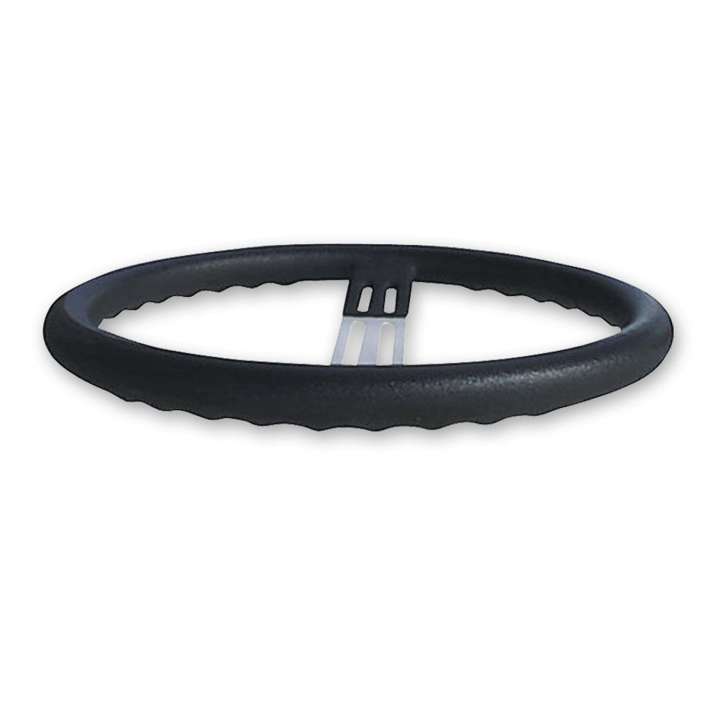 15" black steering wheel with natural anodized aluminum spokes and bump grip. Wheel has a high grip black polyurethane coating.