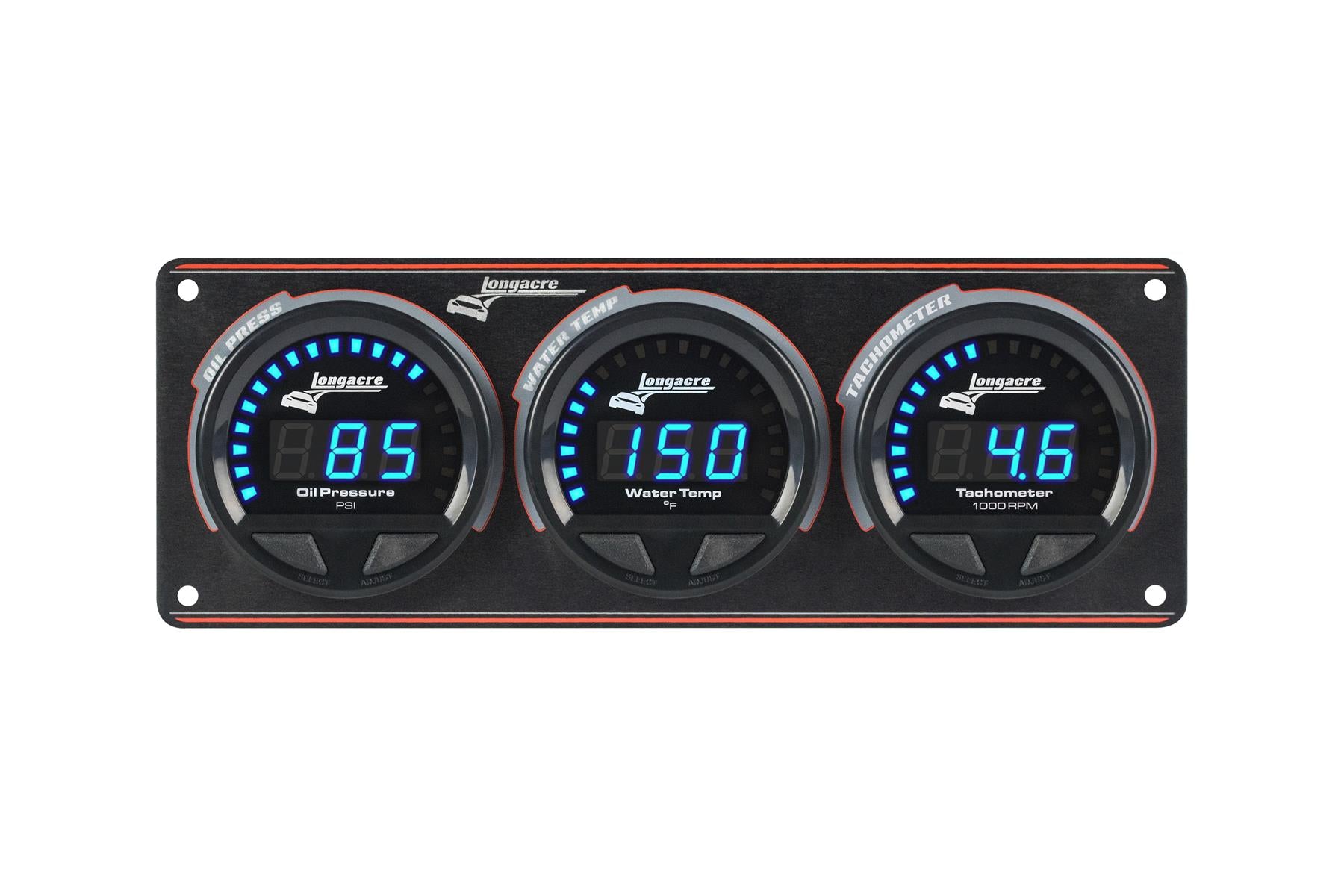 Digital Elite LED Waterproof Gauge Panel from Longacre, 2 Gauge Oil Pressure/Water Temperature/Tach